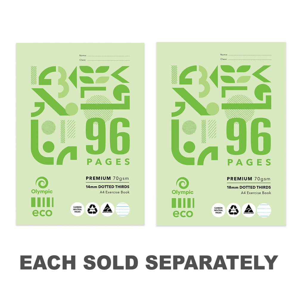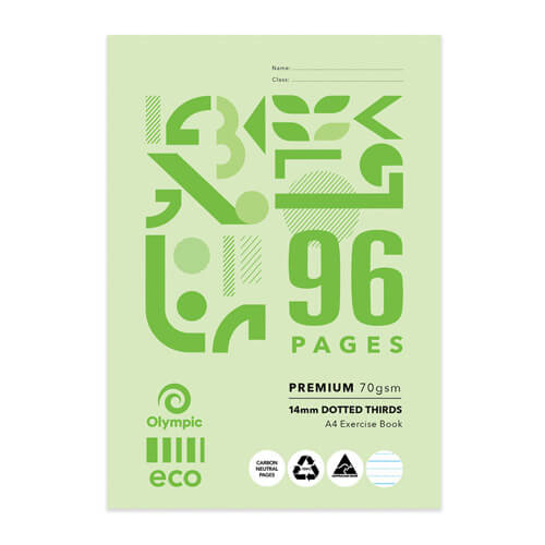 Olympic Eco är det enda intervallet på 100% återvunna träningsböcker som finns tillgängliga med kolneutrala sidor tillverkade av 100% australiskt återvunnet avfallspapper.