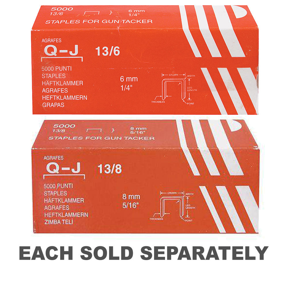 These 13/6, 6mm leg staples are specifically designed to fit Rapid Tacker #13 Lightweight (TQ306) and Tacker Deluxe Medium Duty (TQ340). Each pack provides you with a generous supply of 5000 staples, keeping your stapler ready for action at all times.