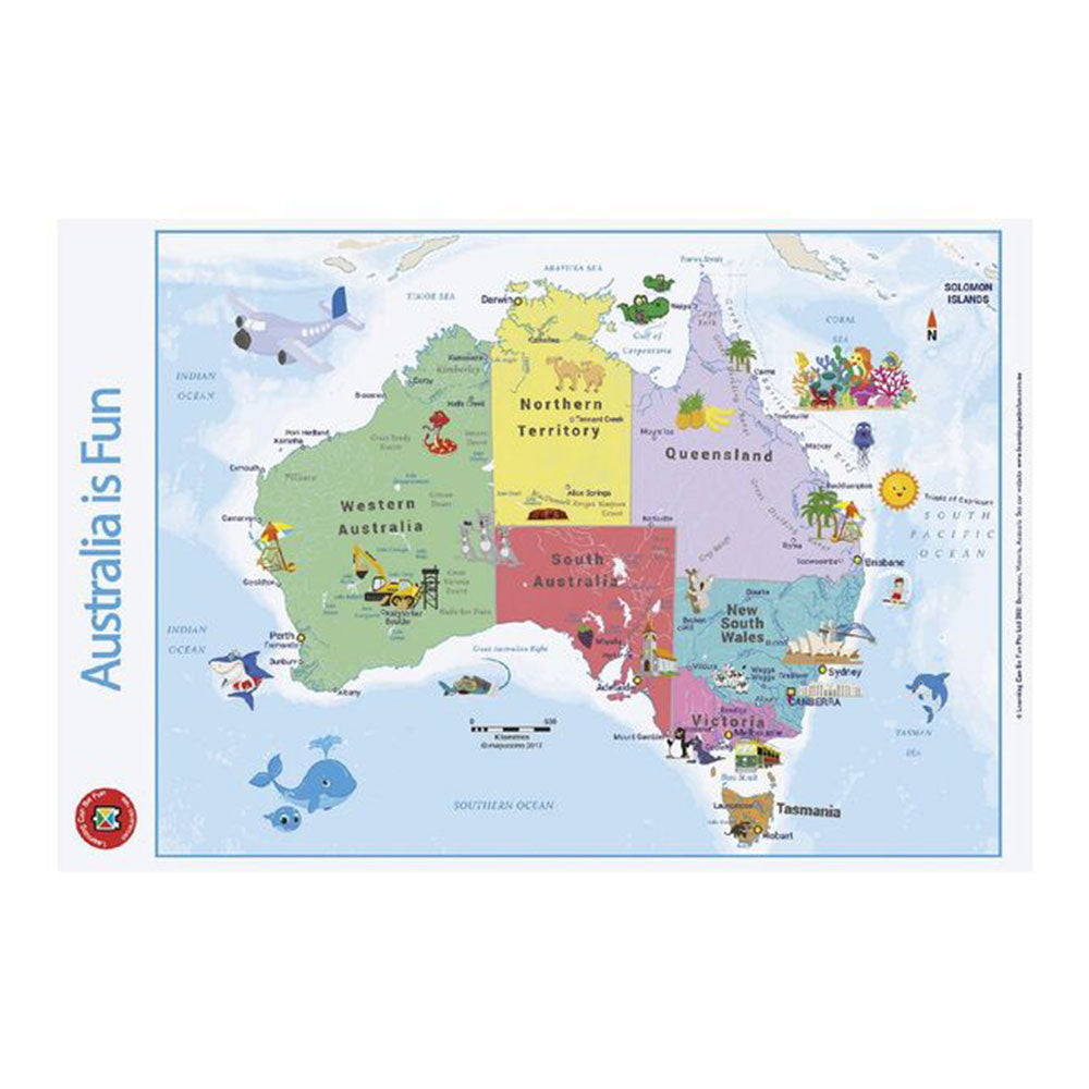 Detta lärande kan vara roligt väggdiagram är dubbelsidig och har en karta över Australien som är färgglad och engagerande för de i alla åldrar. Det har mycket utbildningsinnehåll och iögonfallande grafik, som representerar några av landets mest ikoniska naturliga och kulturella attraktioner och infödda djur. Den omvända sidan har en tom karta som är perfekt för ett lågtryckskunskapstest.