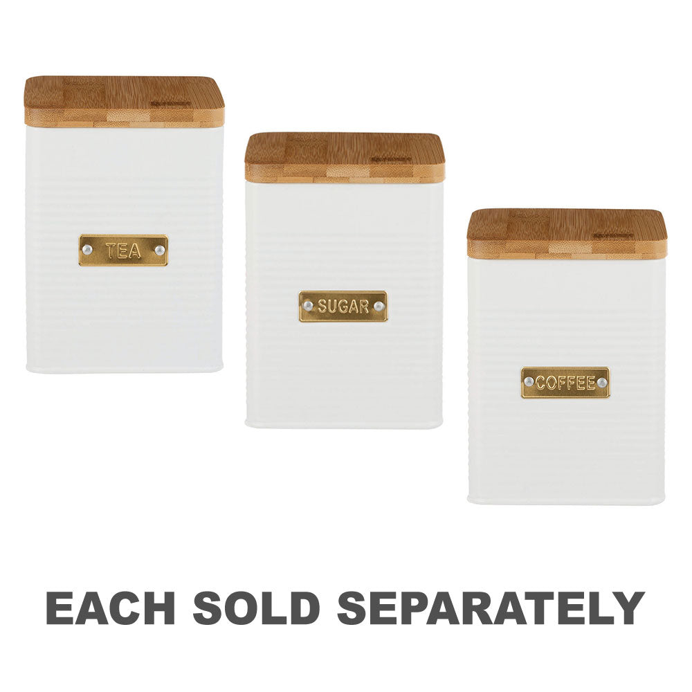 Behållarens eleganta industriella design har en subtil ribbad struktur på kroppen och lägger till sofistikering till din köksdekor. Det lufttäta bambu -locket bevarar färskheten och smaken på ditt te, medan Gold 'Utensil' Badge Detail förbättrar dess lyxiga utseende. Denna behållare är konstruerad med 100% återvinningsbart stål och är både miljövänlig och hållbar.