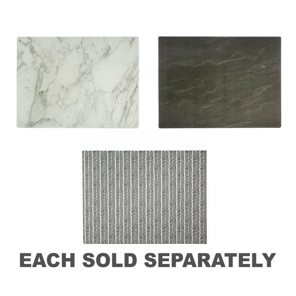 Typhoon -arbetsytskyddet är idealiskt för skärning och huggning. Det skyddar också ytor från heta kokkärl och är bra för att servera varm och kall mat. Det är tillverkat av reporistent härdat glas. Silikonfötter och värmesistent till 180 grader. Mäter 40 cm längd med 30 cm bredd med 7 cm höjd. Finns i skifferskuggan.