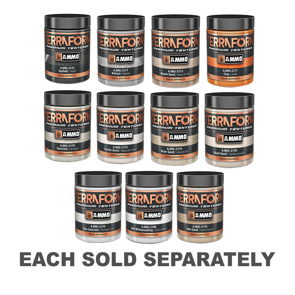 Med denne nye akrylformulering lavet med naturlige mineraler, gjorde du mulighed for autentisk at genskabe en lang række strukturer, såsom beton, sand, asfalt, ler og ballast. Dette produkt, akryl, ikke-toksisk og lugtfri, præsenteres i 100 ml dåser. Det tørrer helt inden for 24 timer og kan blandes med andre lignende produkter fra vores sortiment af teksturer. Det er velegnet til enhver skala fra 1/16 til 1/48.