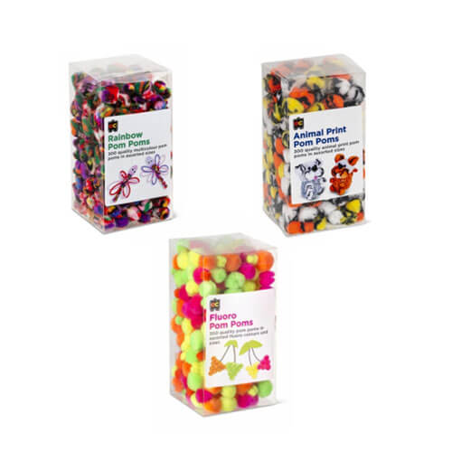 Pom Poms er sjove for masser af kunstige ting, fremstiller julestrømper eller bare leger med dem. Disse glitrende og fluffy pom poms tilføjer en 3D -effekt til enhver håndværksaktivitet. Assorterede glitterfarver og størrelser i en kasse på 200.