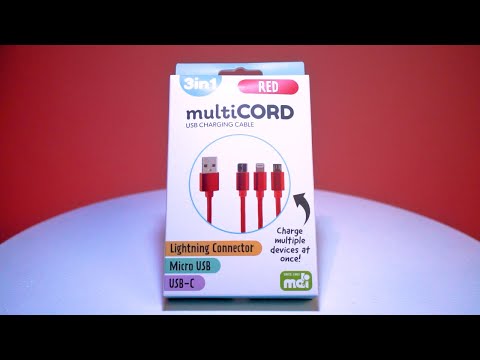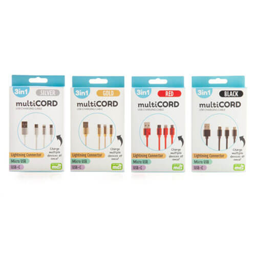 Multifunktionales Ladekabel mit 3 verschiedenen Steckertypen.