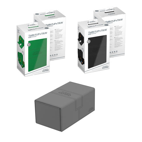 En låda, två kortdäck och ytterligare tillbehörsbricka: Vår Twin Flip'n'Tray 200+ erbjuder alla funktioner en fantastisk däcklåda. Fördubblar storleken på vår klassiska flip'n'Tray 100+, den här rutan är den stora syskon som alla letar efter. Twin Flip'n'Tray 200+ kan innehålla 200 dubbelärmade eller 240 enkelärmade standardstorlekskort*.