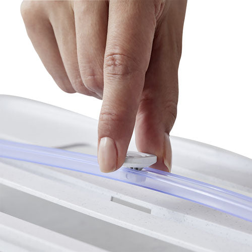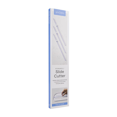 The StoraRoll Slide Cutter replacement track from YouCopia fits straight into your YouCopia StoraRoll Food Wrap Dispenser when youre ready for a fresh cut of aluminium foil, plastic wrap, parchment paper or wax. This replacement cutter features a protective finger button that glides back and forth across the track for a straight, clean cut every time. The hard steel blade is tested to make more than 1,000 cuts before showing signs of dullness.