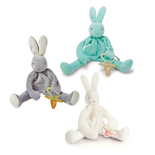 Este conejito Silly Buddy 'Grady' de 25 cm bellamente elaborado seguramente calmará los problemas del bebé con sus grandes orejas caídas, detalles faciales delicadamente bordados y tela de terciopelo súper suave en un hermoso tono gris plateado. Un práctico lazo de cierre táctil en la pata de Grady mantendrá seguro el chupete del bebé, mientras que un suave sonajero interno cautivará y deleitará los oídos de su pequeño. Perfecto para casa o mientras viaja, este compañero súper lindo se conecta fácilmente a una cuna, cochecito o asiento de automóvil para brindar el máximo valor de juego y comodidad.