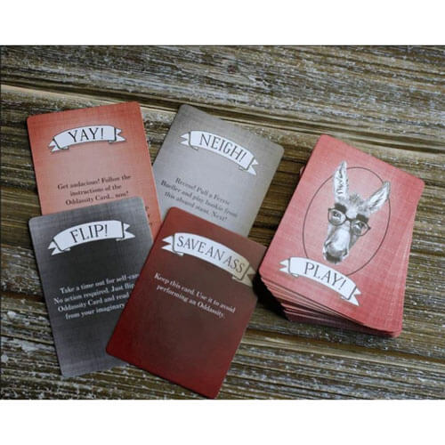 Como anfitrión, puede personalizar su fiesta inolvidable con tres mazos de Oddassity mezclables de desafíos cada vez más absurdos.