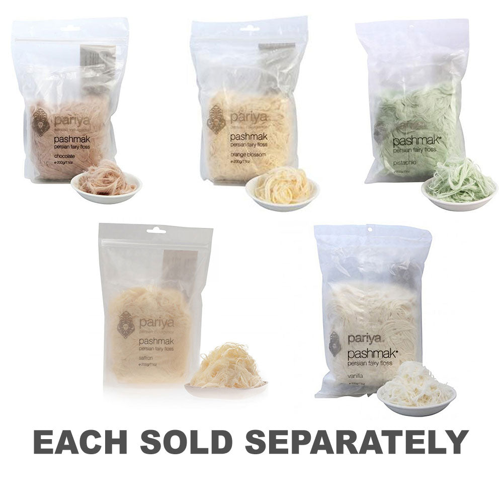 Deleite en la armoniosa mezcla de dulzura y nuez con el hilo dental de hadas pariya pashmak con sabor a pistacho con este 200 g. También conocido como algodón de azúcar persa, Pashmak es una confección delicada y lujosa que se derrite en la boca. Hecho a mano de cuidado, Pariya Pashmak ofrece una experiencia única y derretida en la boca infundida con el rico sabor de los pistachos.