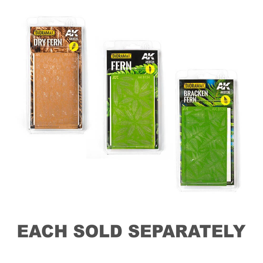 Plantas realistas de alta calidad CO2 cortada con láser. Estas son las plantas más detalladas disponibles en el mercado. Su uso trae un toque distintivo y ultra realista a sus dioramas, escenas y vehículos. Se puede arreglar fácilmente en su lugar con pequeñas cantidades de pegamento blanco, pegamento blanco diluido o usar nuestro fijador original de grava y arena AK118.