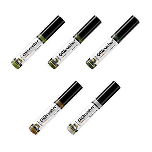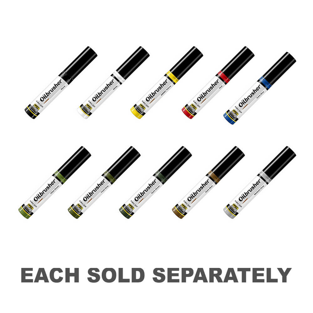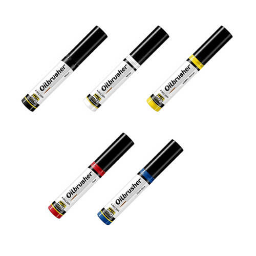 Den nya oljebrushern är den ultimata och revolutionära modelleringsprodukten. Oilbrusher innehåller högkvalitativ oljefärg specifikt formulerad för modellering av användning, utspädd till den perfekta konsistensen som ska appliceras direkt från burken. Cap har en exklusiv inbyggd högprecisionsborste för att applicera färgen direkt på din modell, utan att behöva lägga oljefärgen på en palett eller en bit kartong. Denna utveckling förhindrar att oljan torkar ut och slösar bort produkten i onödan. Dessutom innehåller den moderna behållaren ett dispenser-rengöringssystem som tar bort överskottsfärgen från borsten, vilket lämnar precis rätt mängd i spetsen. Traditionella oljefärgrör var röriga att använda och svåra att öppna när oljefärgen torkar runt locket och fick den att fastna. Detta händer inte med oljebrusheren, det är alltid rent och alltid stabilt
