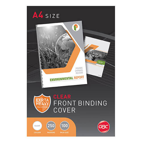 Dessa GBC A4 PVC -bindningsskydd är ett tufft och flexibelt alternativ för att hålla skydd av dina bundna dokument. Dessa bindningsskydd är tillverkade av 250 mikronpolypropen, som inte kommer att veckas och är lätt att torka ren. De är ett icke-reflekterande material med en bländande finish.