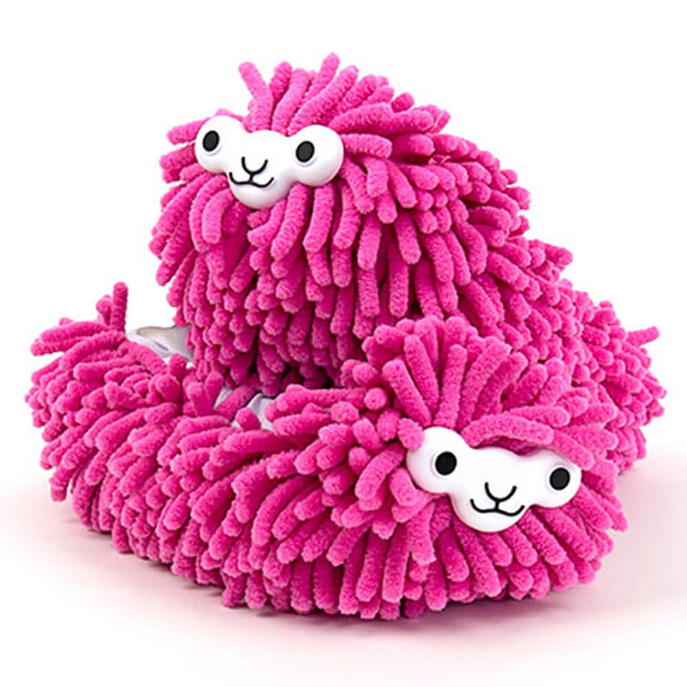 • Roliga nyhetsrengöring av tofflor i rosa lama -design