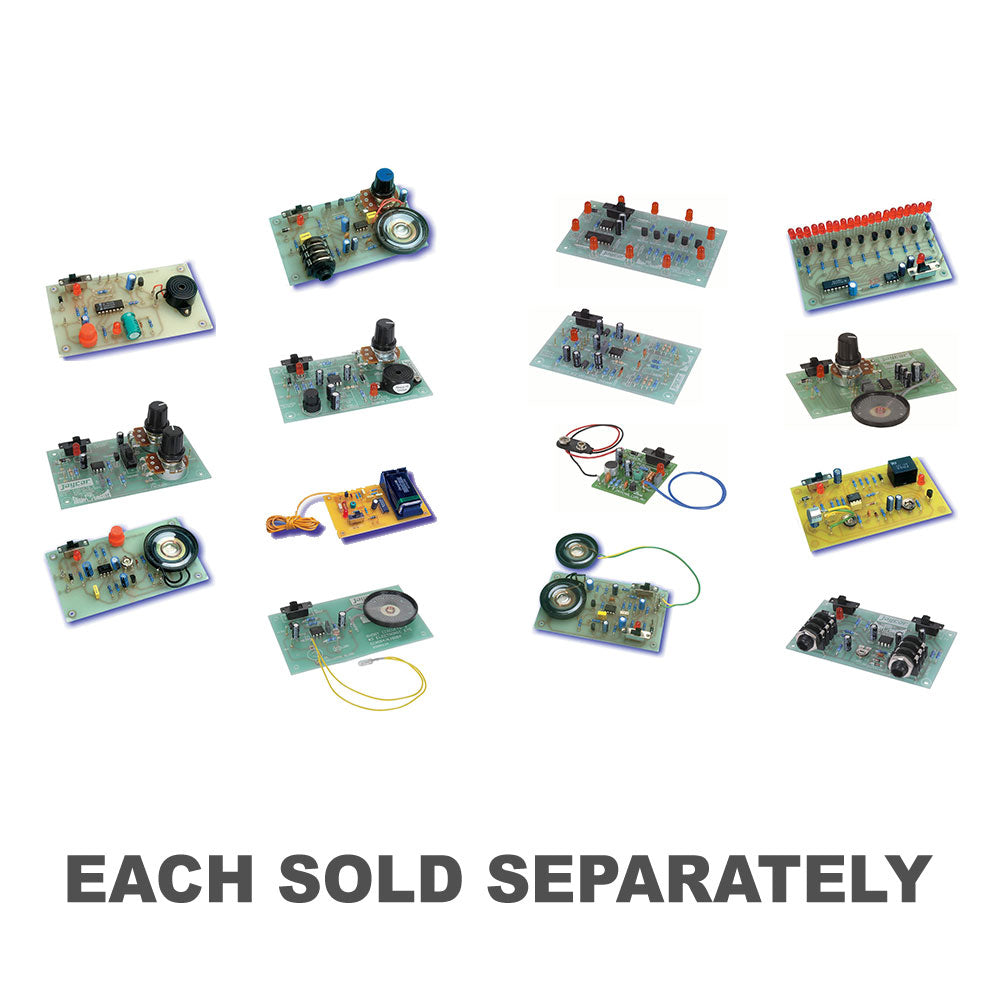- Kit inkluderar PCB, LDR, högtalare och alla komponenter.
