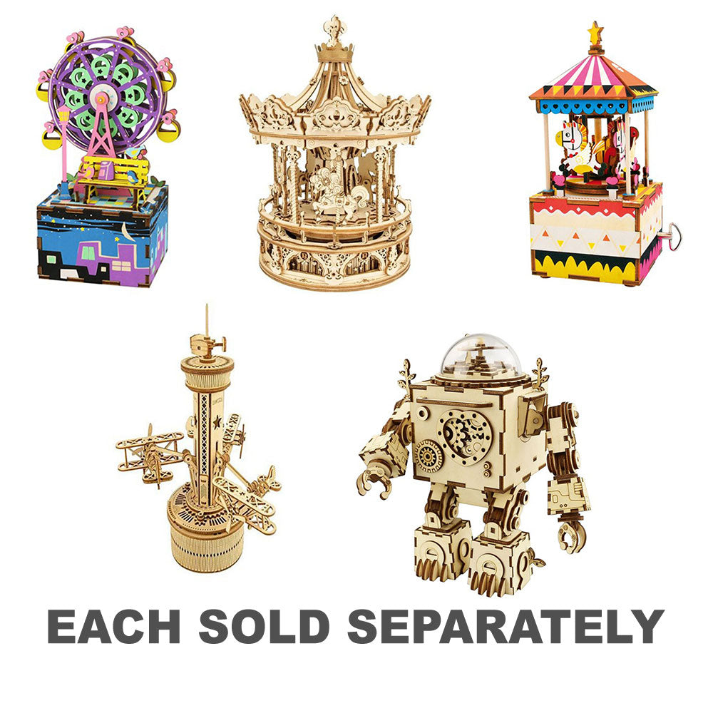 En perfekt kombination av romantisk karusell och cool 3D -träpussel i en musiklåda. Bygg den med händerna och låt den vackra musiken och drömmande atmosfären omge dig!