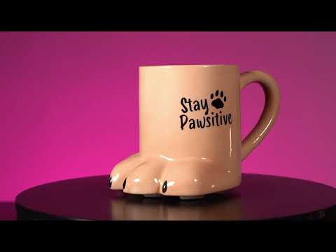 Adorable tasse 3D en forme de patte d'un chat. Run-fect pour l'amant de chat dans votre vie! Présentant des accents gris et une phrase punny qui lit «rester pawsitif».