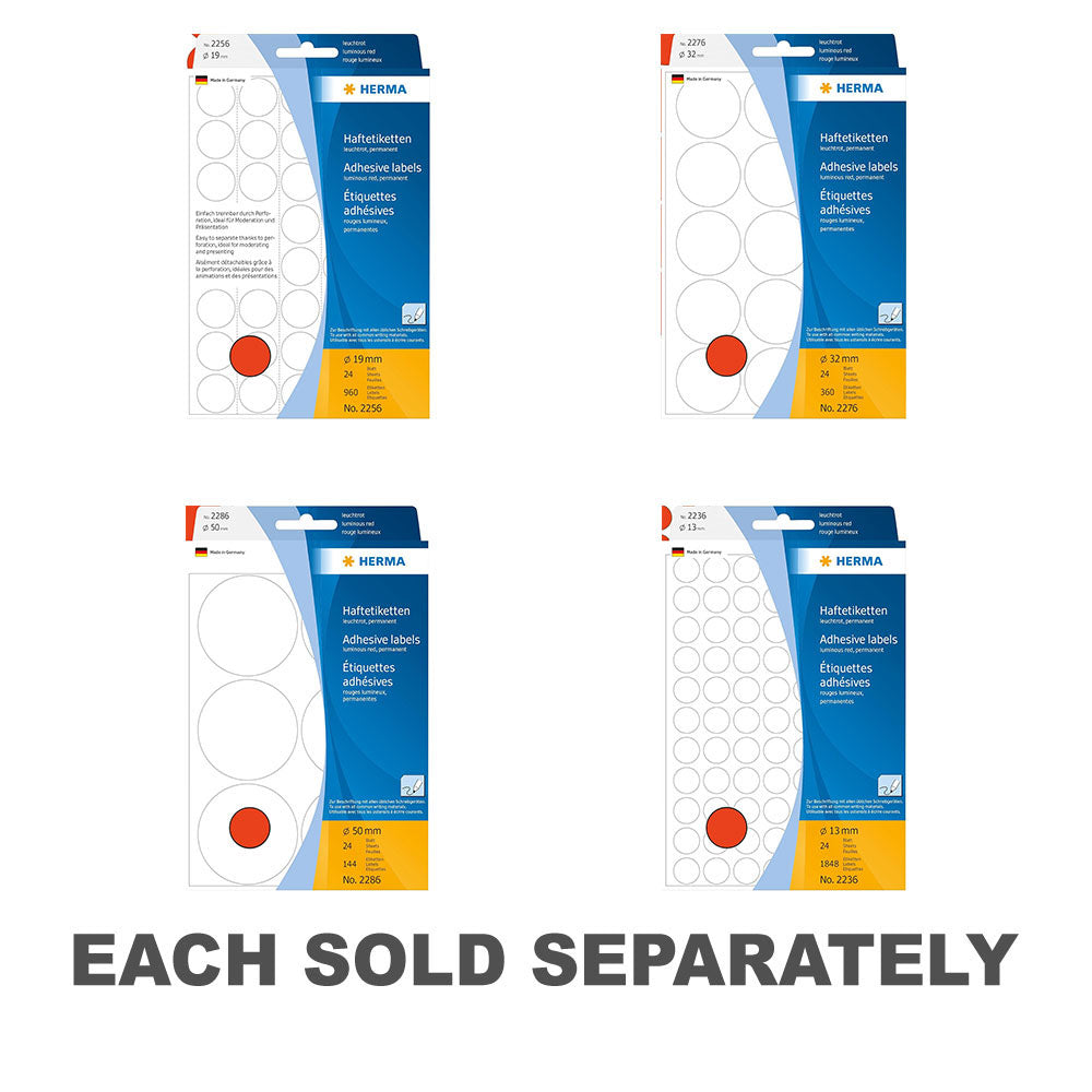 • Lägg till en pop av färg och synlighet i din märkning med dessa lysande röda pricketiketter.
