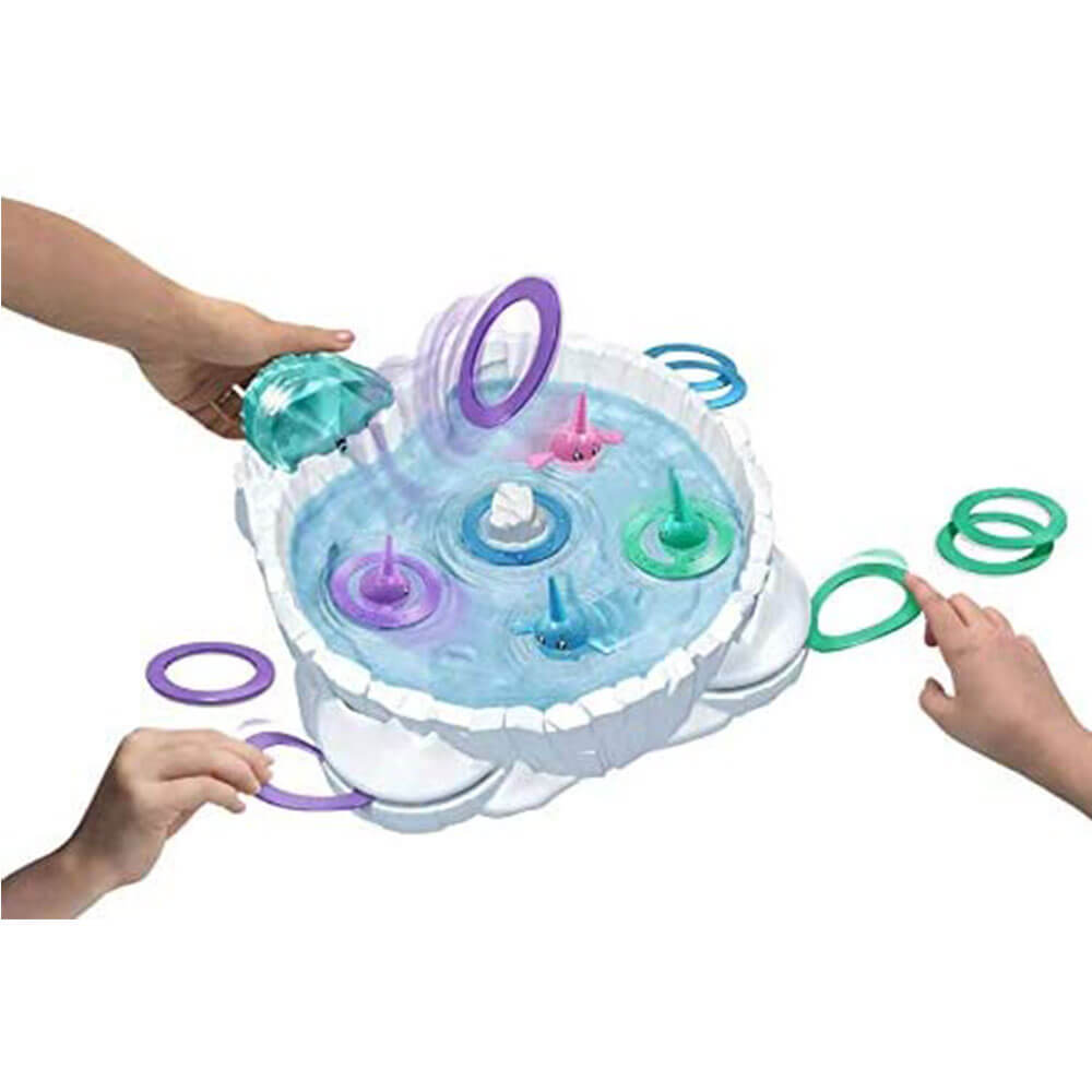 • Score des points en narhal sans tout en retournant vos anneaux colorés sur les défenses des narwhals flottant dans l'arène de la glace. Gagnez des points bonus lorsque vos anneaux atterrissent sur le narhal qui correspond à votre couleur ou sur l'iceberg central. Le joueur avec le plus de points à la fin du match gagne!