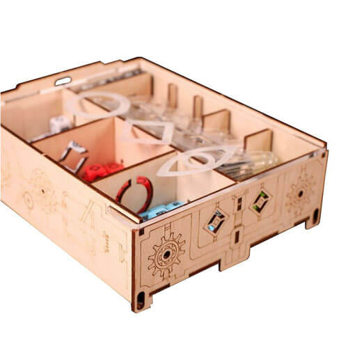 • Un token giocatore iniziale sotto forma di una nave spaziale e un cubo speciale per il vincitore del gioco