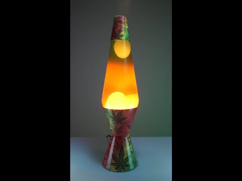 - 緑、黄色、赤のグラデーションガラスのボディは、照明時に渦巻き、波打つ溶岩で満たされています。