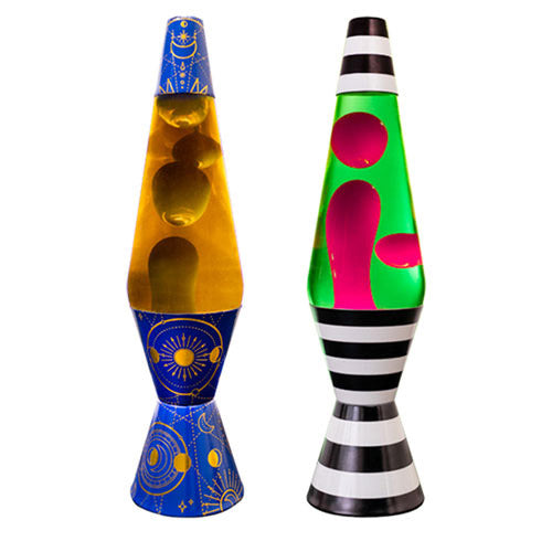 • 点灯すると渦巻き、波打つ溶岩で満たされた紫と青のグラデーションガラスのボディを特徴