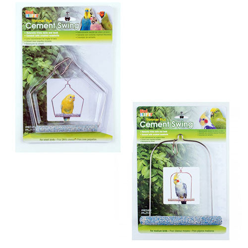 - 小さな鳥の種向けに設計されたこのコンパクトセメントスイングは、休息と演奏に居心地の良い止まり木を提供します。