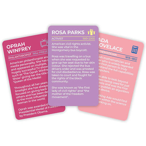 • これらのカードは、歴史上最も英雄的な女性の一部を備えています