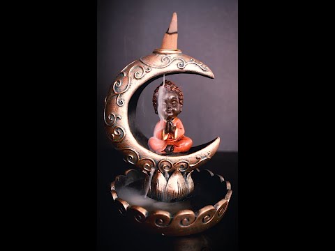 - 三日月で瞑想する赤ん坊の仏のような形をした逆流香容器バーナー。