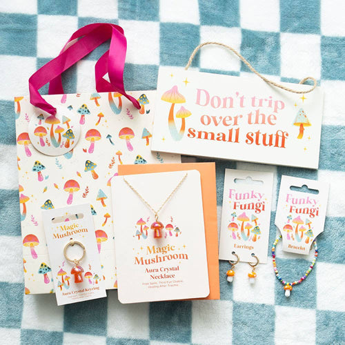 Use this sign as a groovy reminder to always go with the flow. Features a vibrant mushroom design and "Don't trip over the small stuff" text for a boost of extra encouragement. Designed as part of the Funky Fungi range of groovy mushroom gifts and decor.