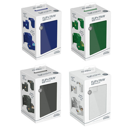 典型的な究極のガードデッキボックス:強力な磁気閉鎖、カードおよびサイコロトレイを備えた時代を超越したモノコールデザイン、デッキの安全な保管、耐性が滑らかなアフセノスキン表面。さらなる安全をお探しですか?標準サイズの100個のダブルスリーブまたは120個のシングルスリーブカードの部屋を備えたFlip'n'tray 100+にはすべてがあります。