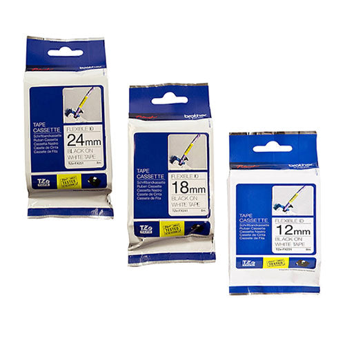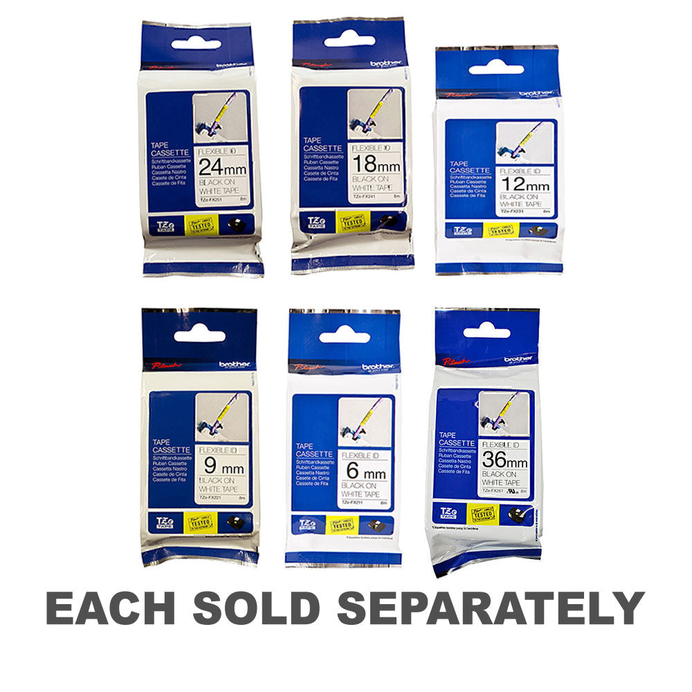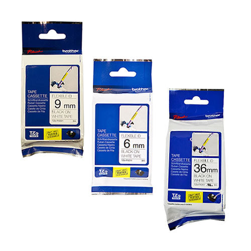 • Etikett buede overflater med bror fleksibel svart på hvitt tape