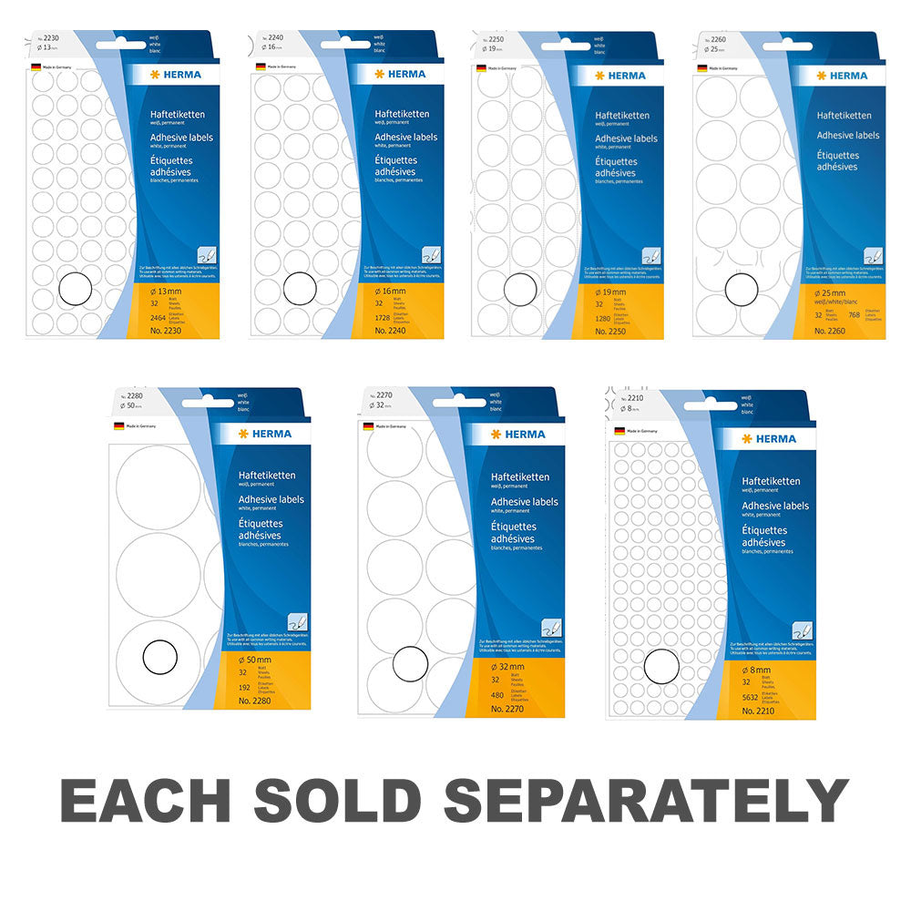 - Etikettobjekt med dessa självhäftande vita pricketiketter.