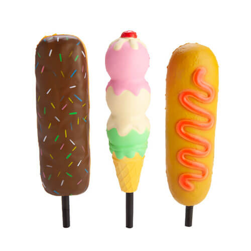 Seks morsomme design av Smooshos Pen er tilgjengelige inkludert iskrem, smultring, pølse, panda, katt og regnbue. De lyse og fargerike designene gjør disse pennene til en stor hit med barn, men den virkelige gleden kommer fra å klemme den skummende kroppen på pennen i forskjellige former. Disse pennene er en god stressavlastning, og bare noe morsomt som barna vil like å leke med.