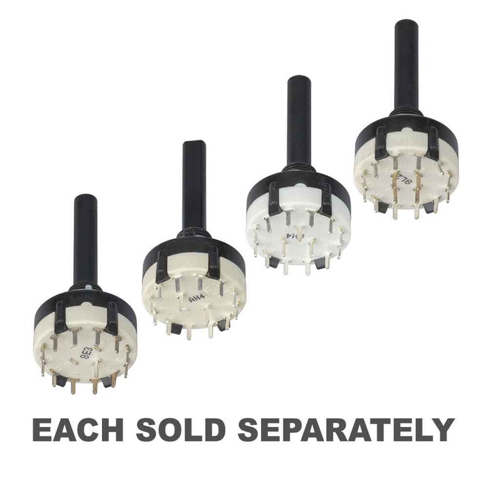 Przełączniki te mają zdejmowany pierścień z TAB, który można włożyć do przełącznika na kilka sposobów na konkretne wymagania. Na przykład, jeśli kupiłeś przełącznik 1 bieguna x 12 (maksymalny), możesz go przekonwertować na, powiedzmy, 1 droga 7 Way między przystankami. Mają standardowy wał 1/4. Otwór panelowy 10 mm.
