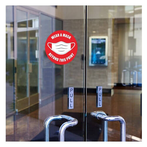 - Hjälp till att förhindra att bakterier sprider sig med denna användbara förtryckta "bär en mask" 200 mm runda avtagbara skyltar etiketter