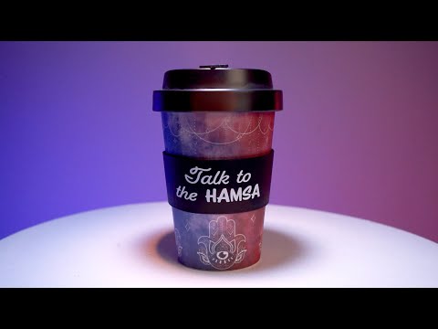 - Matchande svart anti-spill lock och skyddande silikonband med punny fras 'prata med Hamsa'.