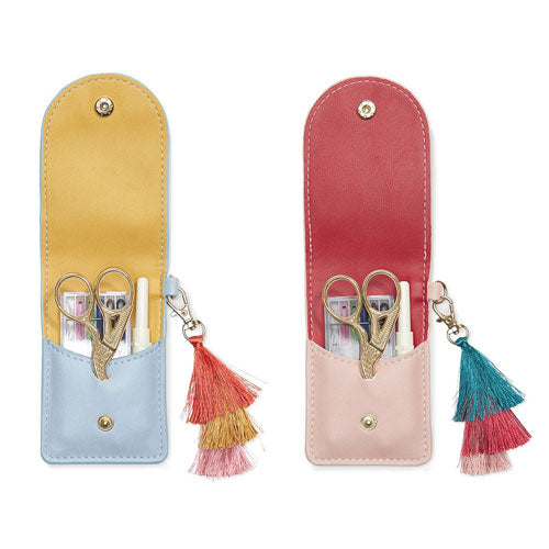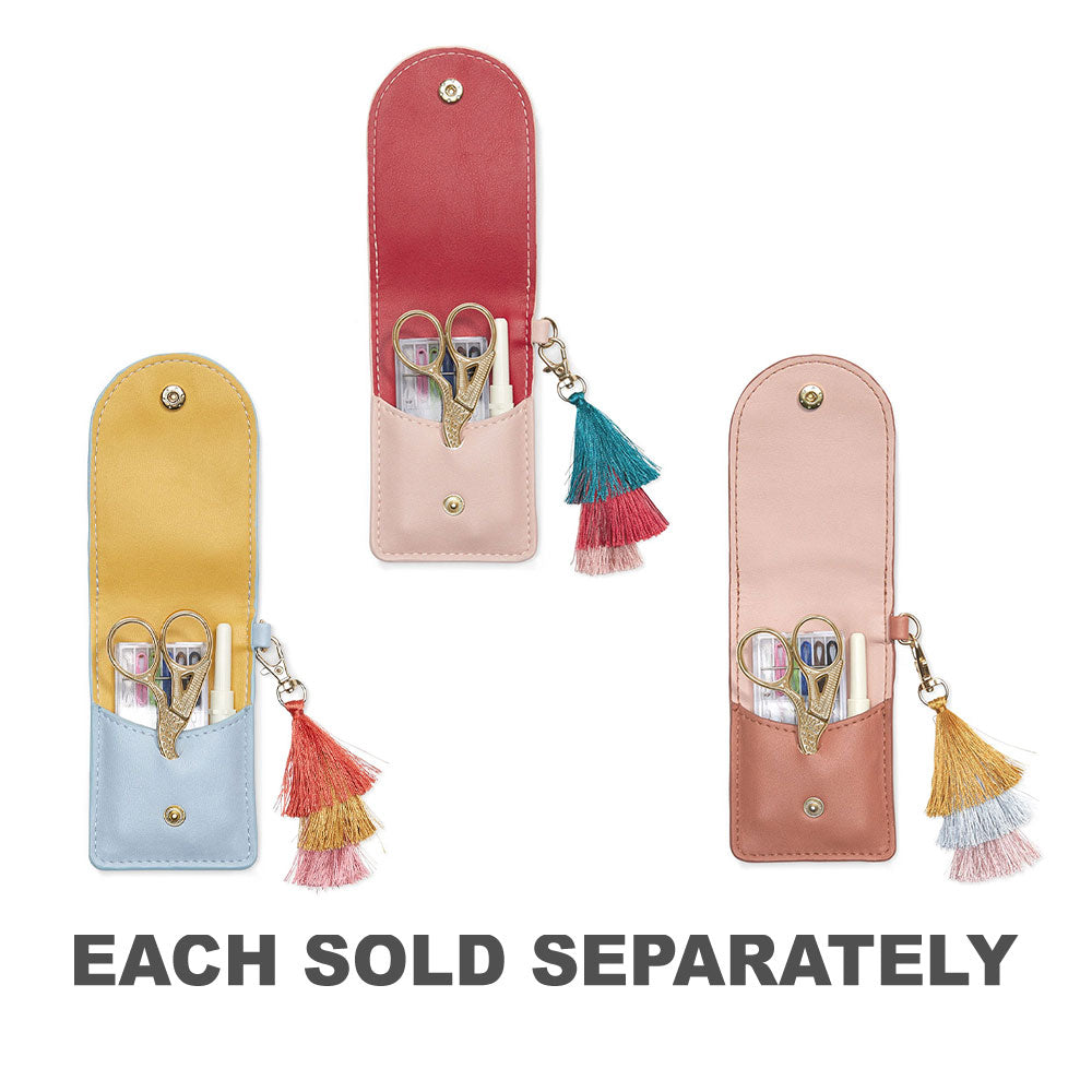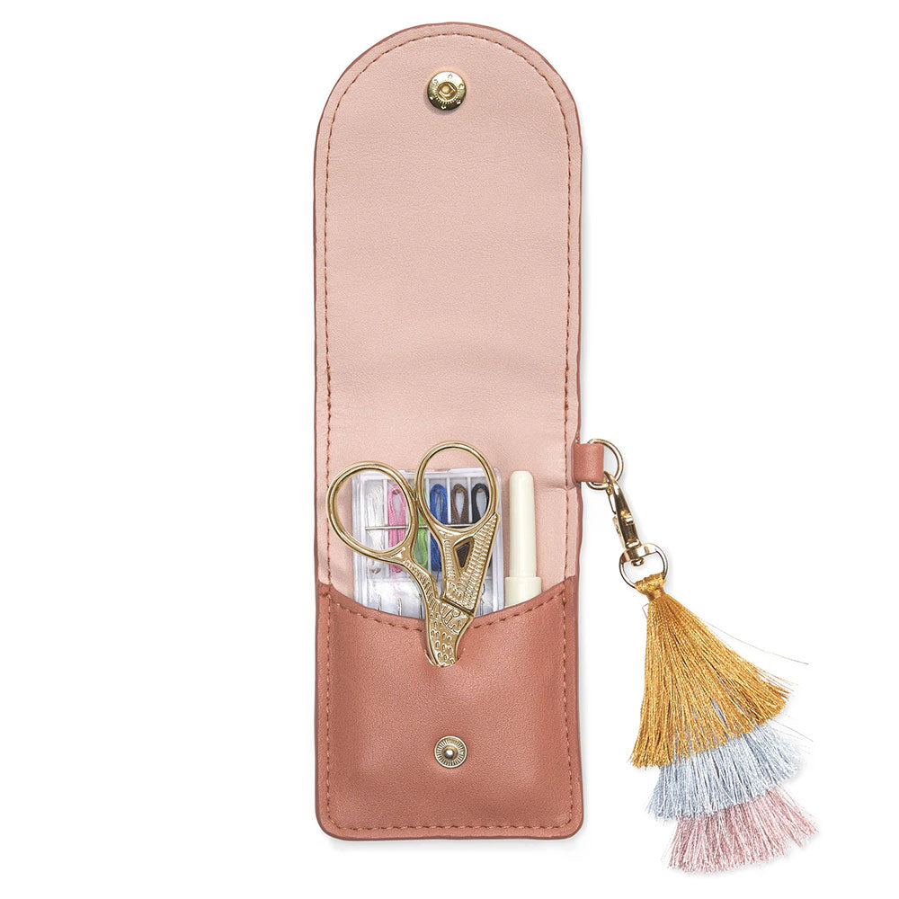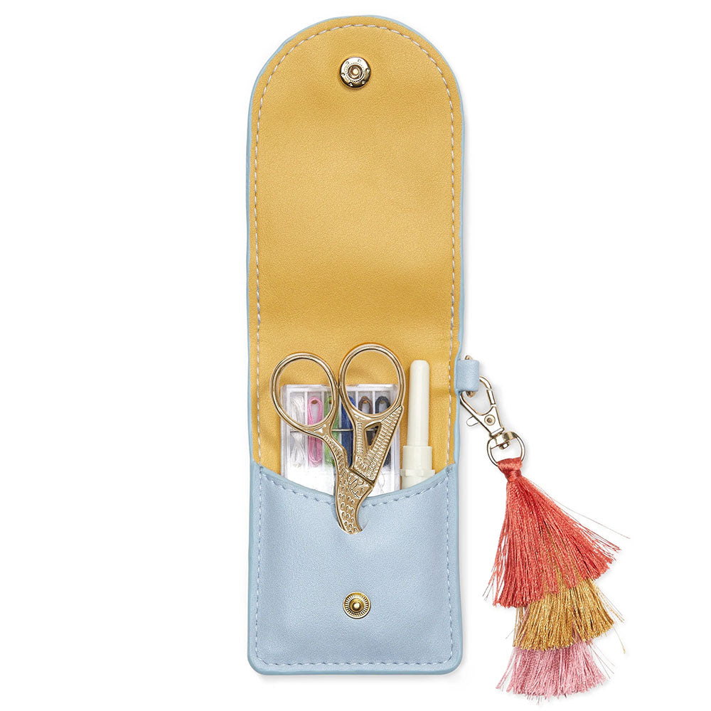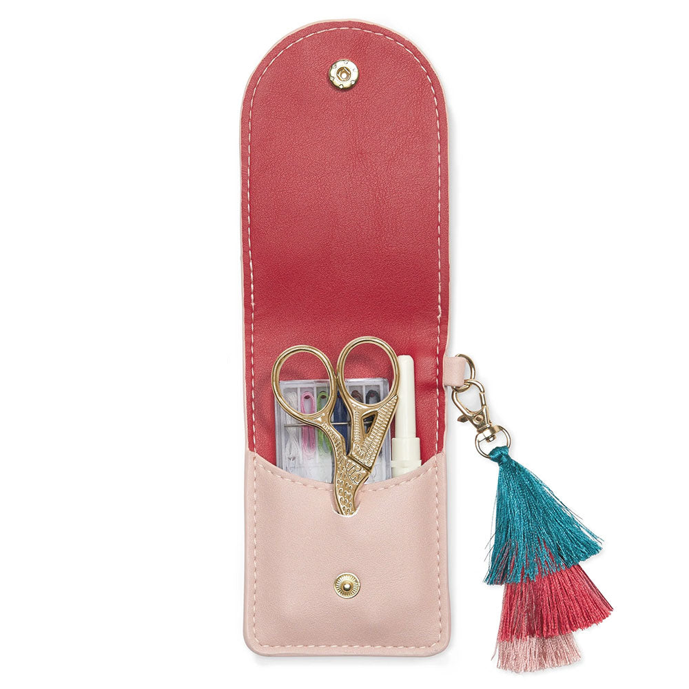 Ett smart och kompakt resesypaket i veganskt läderfodral, perfekt att ta med dig var som helst. En praktisk gåva för ofta resenärer, lagerfyllare, födelsedagar eller bara för att sticka in i ditt skrivbord eller ha till hands hemma för garderobsmissar. När du alla är ute av sömnadsmaterial och du är ute av sömmar, kolla in detta snygga men ändå praktiska sömnadssats. Det är den bästa sömmen du kan vara i när saker faller isär!