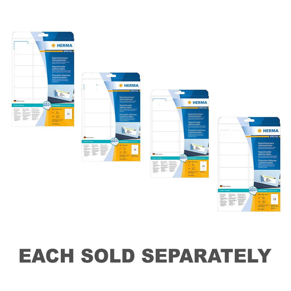 Förenkla dina e -postuppgifter med HERMA -lim adressetiketter! Detta paket innehåller 25 A4-storlekar etiketter, var och en med en vit finish för tydliga, professionella utskrifter. Dessa etiketter är designade med en stark limstöd och följer säkert till kuvert, paket eller fraktlådor, vilket säkerställer att dina poster når sin destination säkert. Oavsett om det gäller affärskorrespondens, personliga utskick eller organisatoriska behov, erbjuder dessa HERMA -etiketter tillförlitlighet och bekvämlighet för alla dina adressmärkningsuppgifter. Gör dig redo att effektivisera dina e -postprocesser med HERMA -lim adressetiketter!
