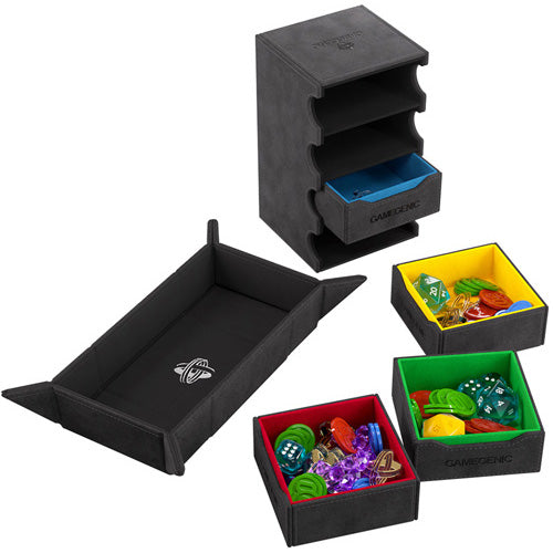 • Contém 4 gavetas com código de cores separadas, perfeitas para fichas, dados e muitos outros itens