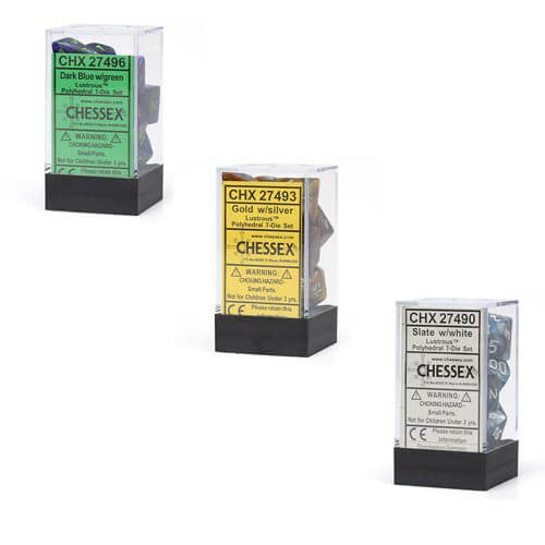 Os dados de assinatura são uma compilação das cores mais vendidas de novos dados lançados nos últimos anos. Inclui uma grande variedade de cores e materiais, mas cada uma é uma adição única e interessante a qualquer coleção de dados. Este conjunto contém um D20, um D12, dois D10 (00-90 e 0-9), um D8, um D6 e um D4.