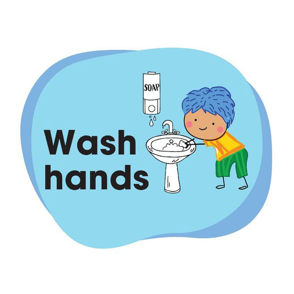 - A placa do piso foi projetada para lembrar estudantes e clientes para lavar as mãos.