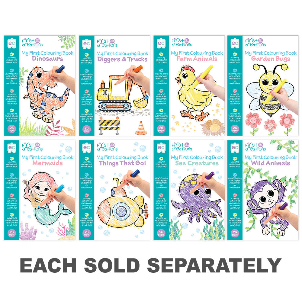 The My First Colouring Book Range is an exceptional collection designed to engage young minds and foster creativity. Each colouring book in the range brims with 26 enchanting pictures, offering limitless opportunities for imaginative exploration and enjoyment.
