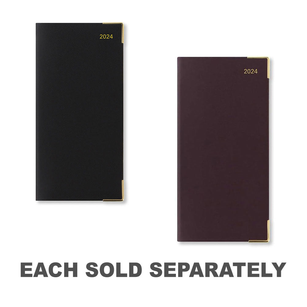 • O diário semanal Slim Slim, Letts 2024, no clássico Black, um acessório de planejamento elegante e funcional projetado para indivíduos que buscam um organizador fino e eficiente para seus horários semanais.