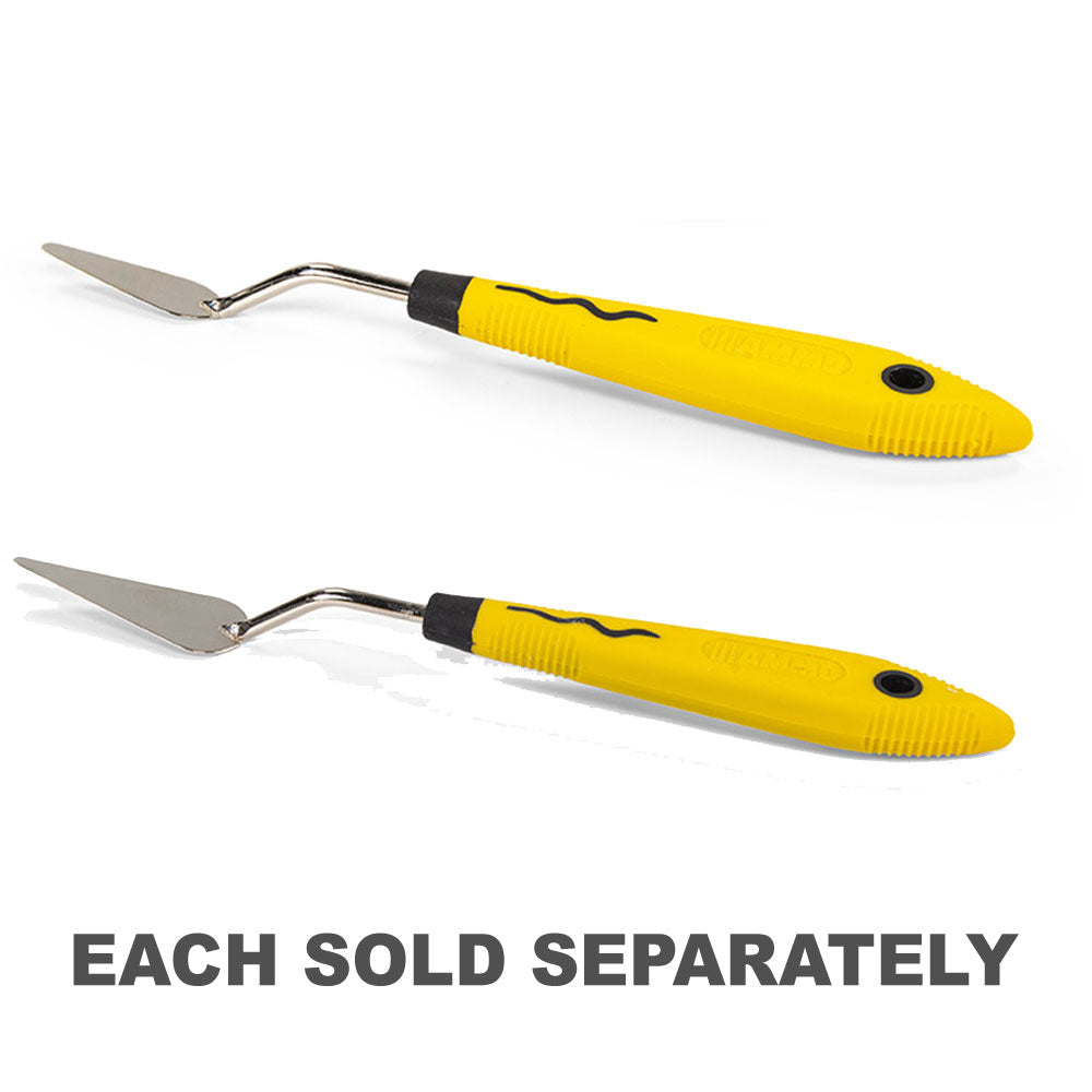Facas de paleta de aço inoxidável de alta qualidade com lâminas flexíveis e alça de borracha ergonômica para facilitar a aderência e o conforto. Ideal para construção de vinheta e diorama, aplicação e espalhamento texturas, pborizando e distribuindo pigmentos, bem como para o trabalho de escultura e escultura.