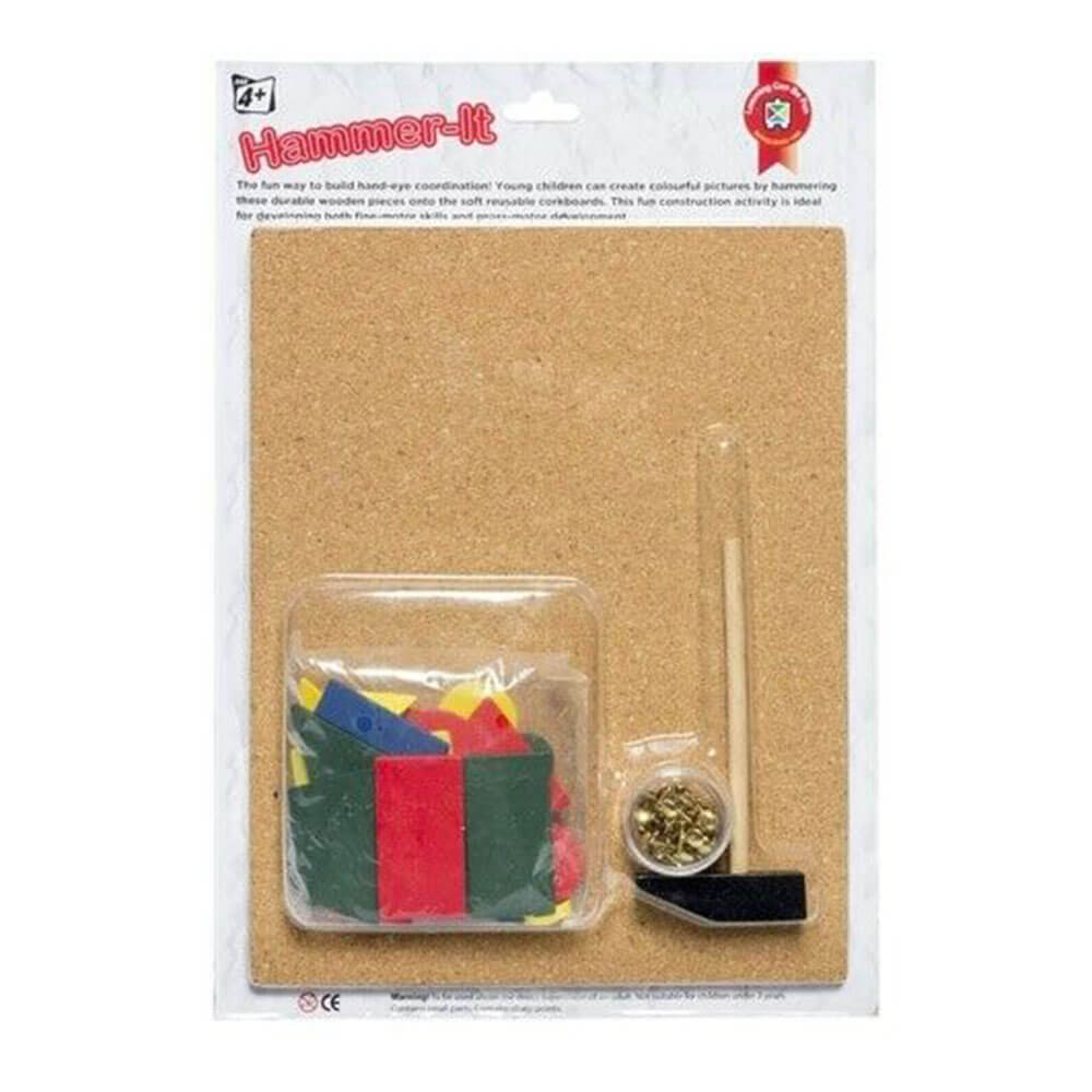 • O pacote consiste em quadro de cortiça (300 mm x 255 mm), pedaços de madeira, tachas e martelo de madeira.