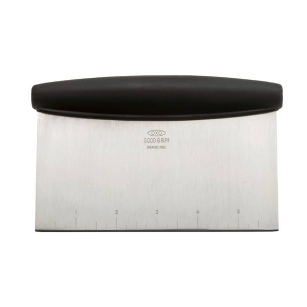 O OXO Good Grips Grips multi-fins aço inoxidável Ruscador e helicóptero é uma adição inteligente a qualquer cozinha. Use o raspador e o helicóptero para dividir, raspar, esmagar e cortar enquanto prepara sua receita favorita. Os incrementos de quarto de polegada aparecem na lâmina de aço inoxidável para facilitar a medição. A aderência larga e confortável fica na sua mão, mesmo quando molhada. Lavagem de louça Segura.