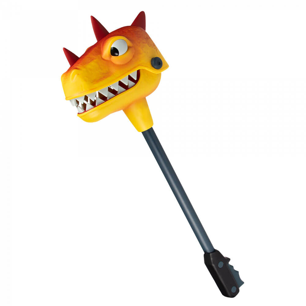 Projetado diretamente a partir de ativos do jogo da pele épica para a picareta (também conhecida como ferramenta de colheita), a réplica de tamanho vital da marca Bitemar foi cuidadosamente esculpida e pintada para uma aparência autêntica, e tem aproximadamente 38 "de altura. A ferramenta de colheita de marca Bitemar Cabeça de dinossauro ferozmente feroz em um graveto, semelhante aos brinquedos clássicos do Snapper, e é exibido em embalagens com temas de Fortnite Premium Fortnite.