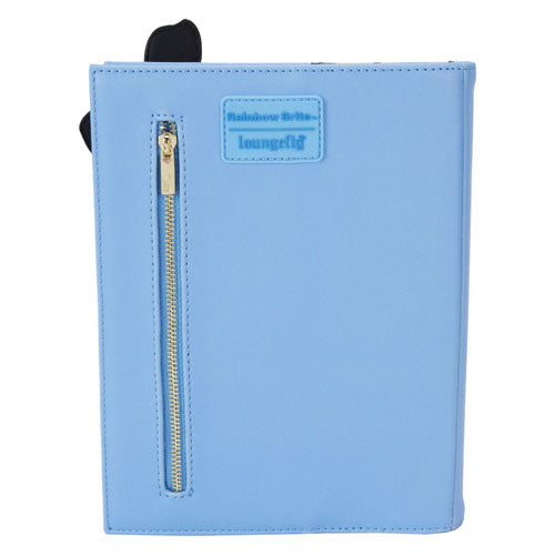 Loungefly Rainbow Brite Cosplay Journal är gjord av veganskt läder (polyuretan) och inkluderar glänsande guldhårdvara. Ytterligare funktioner inkluderar applikations- och tryckta detaljer.