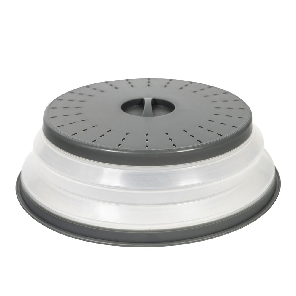 Det stora mikrovågsugn-kollapsbara matskyddet från Tovolo serverar dubbla ändamål för att hålla maten fuktig när man mikrovåg och håller mikrovågsugn ren genom att förhindra splatter. De ventilerade hålen tillåter ånga att frigöra jämnt, förhindra kondens, samtidigt som man säkerställer att mat inte torkar ut, vilket gör uppvärmning av mat enkelt och effektivt. Tillsammans med dess huvudsakliga syfte är för mikrovågsugn, kan matskyddet vändas och användas som durkslag för att skölja och anstränga grönsaker, vilket gör att vattnet kan rinna genom ventilationshålen. Tvätta genom att ge locket en snabb torkning eller via diskmaskinen. När du inte används, kollapsa bara omslaget och butiken.