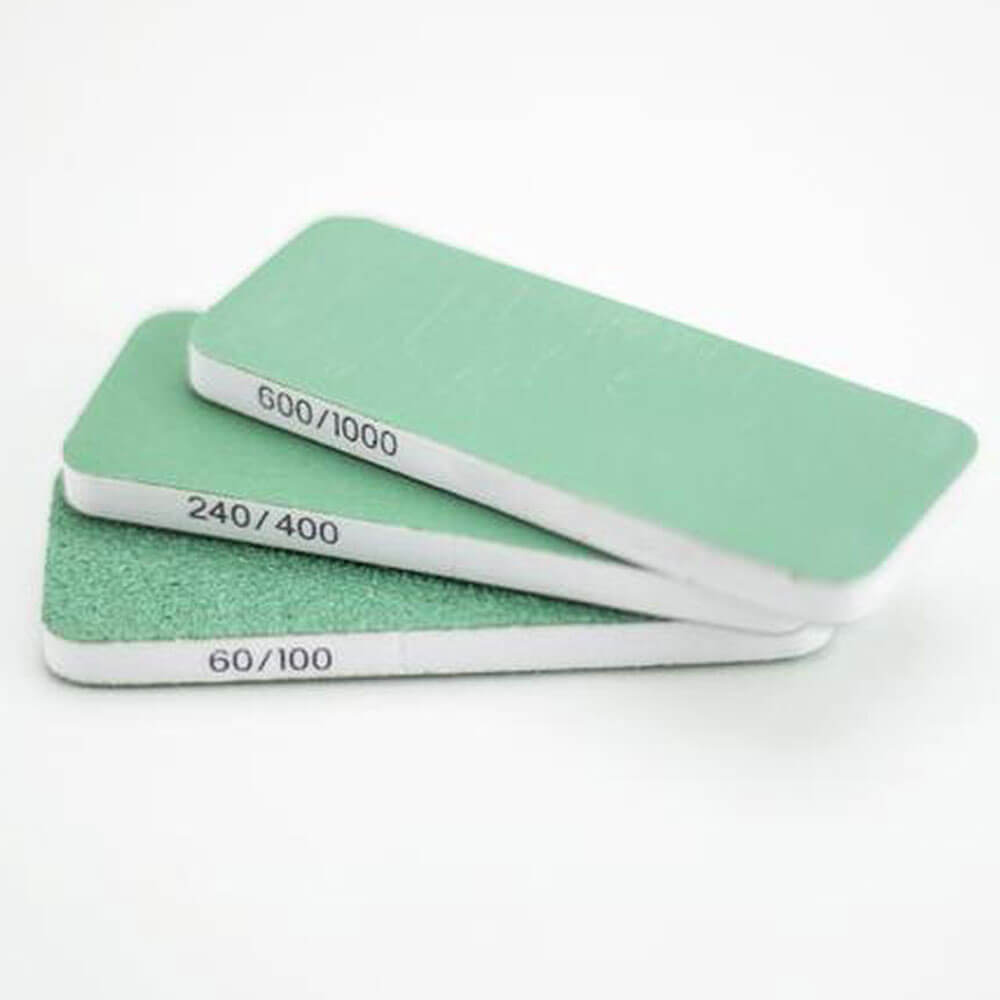 Os Flexi Sanders são um conjunto de 3 e são laváveis e reutilizáveis. Eles oferecem as seguintes combinações de grau: grossa (60/100): remoção de material eficaz.medium (240/400): mistura e suavização.Fine (600/1000): acabamento e polimento.